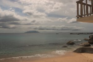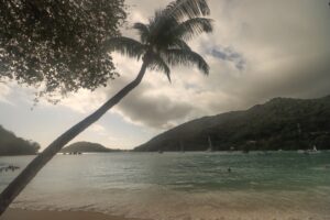 Das Wetter auf Mahé empfanden wir als sehr angenehm, wir waren ja noch nie in den Tropen und deswegen gespannt, wie es sich dort aushalten ließ. Im August weht dort der stetige Wind des Südostmonsuns, welcher die allgegenwärtigen Quellwolken ständig in die gleiche Richtung trieb. Tag für Tag das gleiche Bild am Horizont bei angenehmen Tagestemperaturen um 30 Grad und 25 Grad in der Nacht. Ein Wetterbericht scheint hier überflüssig. So etwas kannten wir nicht, besonders beeindruckend auch der Abendhimmel über dem Meer und noch spektakulärer der pechschwarze Nachthimmel mit den Sternen des Südens. Dieses Schauspiel verfolgten wir fast jeden Abend von unserer Terrasse mit dem 180 Grad Blick über den Indischen Ozean und der stets in Wolken gehüllten Insel Silhouette als Fixpunkt am Horizont. Sonnenuntergang war schon kurz nach 18:00 Uhr und eine Stunde später war es stockduster.