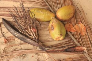 Ich lernte sogar Kokosnüsse zu knacken in diesem Urlaub, nach den teils recht stürmischen Nächten lagen morgens bei uns am Strand immer wieder herabgefallene Kokosnüsse, die ich aufsammelte (morgens war ich immer der erste am Strand und im Wasser), mich aber schwer tat diese zu knacken. Nach ein paar Tipps gelang es mir dann aber doch mit sehr viel Kraft und der richtigen Technik, wodurch wir einen willkommenen Mittagshappen am Strand hatten.