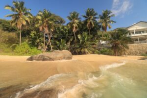 Ich hatte ein hübsches, kleines Hotel direkt am Meer ausgesucht und schon nach einem ersten Blick von unserer Terrasse auf den direkt unter uns liegenden Strand wussten wir, hier sind wir richtig! Eingerahmt von Granitfelsen und Kokospalmen lag dieses stille Fleckchen in einer üppigen tropischen Landschaft. Der erste Sprung in den Ozean vertrieb auch die Reisestrapazen schnell. Schon bald merkten wir, das unsere Gastgeber mit einer warmen Herzlichkeit gesegnet waren und wir sofort einen guten Draht zu den Menschen dort im Haus fanden. So entwickelte sich schnell eine entspannende Wohlfühlatmosphäre, die uns den ganzen Urlaub „versüßen“ sollte.