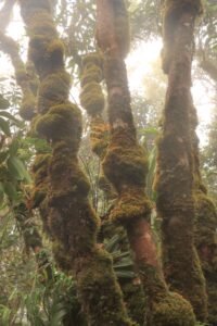 Die dritte Fahrt führte uns in das grüne Herz der ohnehin üppig grünen Insel, den Morne Seychellois Nationalpark. Wir gingen den Morne Blanc Trail durch den tropischen Nebelwald hinauf zum gleichnamigen Gipfel auf 675 m. Für mich war das der eigentliche Höhepunkt (nicht nur topografisch) des gesamten Urlaubs. Das erste Mal überhaupt in einem tropischen Regenwald, waren wir wie gefesselt von der mystischen Stimmung zwischen den Wolken in diesem Bergwald. Der Weg war steil, führte über die allgegenwärtigen Wurzeln und Steine hinauf in einen Märchenwald, dicht bewachsen mit Farnen, Palmen, moosbewachsenen Lianen und mächtigen Baumriesen der vor Feuchtigkeit tropfte. Viele dieser Pflanzen sind endemisch, kommen also nur auf den Seychellen vor. Da war es fast nebensächlich das wir von der kleinen Plattform, auf dem Gipfel mitten in den Wolken stehend, Null Sicht hatten.