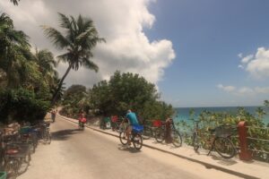 Einen ganzen Tag verbrachten wir dann auf der Insel La Digue (zwei Stunden von Mahé entfernt), dort dominieren die Radfahrer. Das war natürlich für uns Radler ganz besonders schön. Ganz entspannt kann man dort auf dem Drahtesel die Insel erkunden. Aus der geplanten Inselumrundung wurde leider nichts, da wir am Strand Anse Patates an der Nordspitze der Insel, dem für uns bisher schönsten Seychellenstrand, einfach entzückt „hängenblieben“. Hier konnte ich auch wieder auf den bizarren Granitfelsen herumklettern und dort dem ultimativen Fotomotiv hinterherjagen.