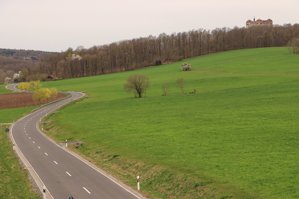 Erster Blick vom Radweg bei Freienorla zur Leuchtenburg