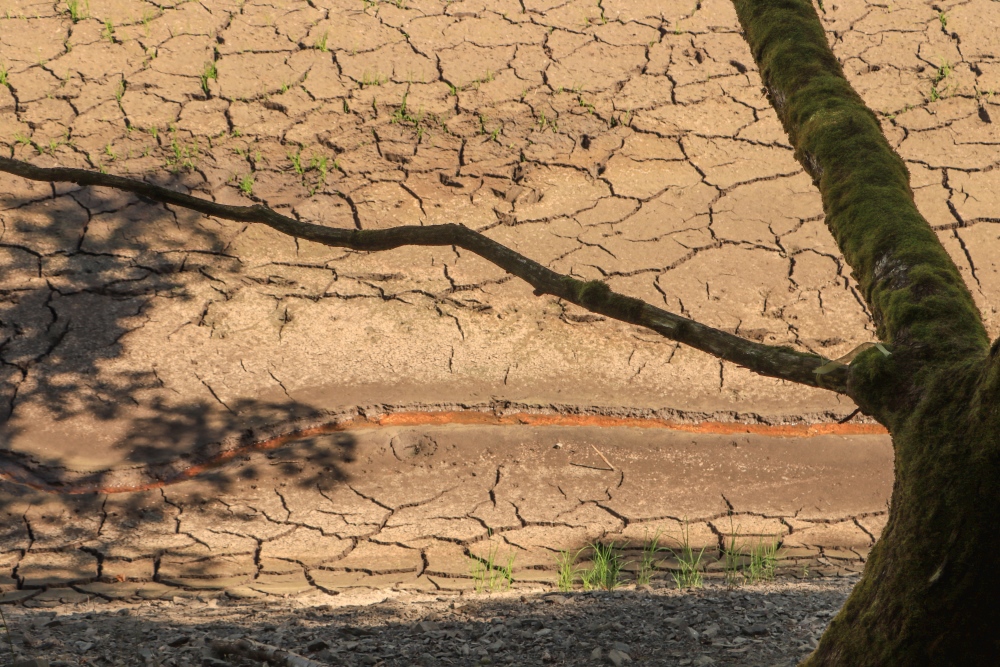 Nur ein Rinnsal am ausgedörrten Talsperrenboden, Banfer Bach 7-25