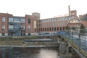 Annaberg erreichte ich nach Umstieg in Leipzig und Chemnitz gegen 9:40 Uhr. Es war kalt und trübe dort, schlimmer das die Wege und Straßen teils spiegelglatt waren. Das bemerkte ich schon bei meinen ersten Schritten am Bahnhof. Hier war also höchste Vorsicht geboten! Meinen Plan zunächst eine Kaffeepause am Marktplatz einzulegen, ließ ich auf Grund der örtlichen Bedingungen sofort fallen und begab mich gleich vorsichtig über den Stadtteil Frohnau aus der Stadt. Am berühmten Frohnauer Hammer gab es noch einen Halt (auch hier war alles spiegelglatt), dann fuhr ich den ersten sportlichen Anstieg des Tages hinauf, um vom Annaberger Tal hinüber in das Zschopautal in Schlettau zu gelangen. Doch schon bald erkannte ich, das mir dort oben die erhoffte Panoramasicht auf Annaberg mit dem markanten Pöhlberg heute leider im Hochnebel verborgen blieb, schade!